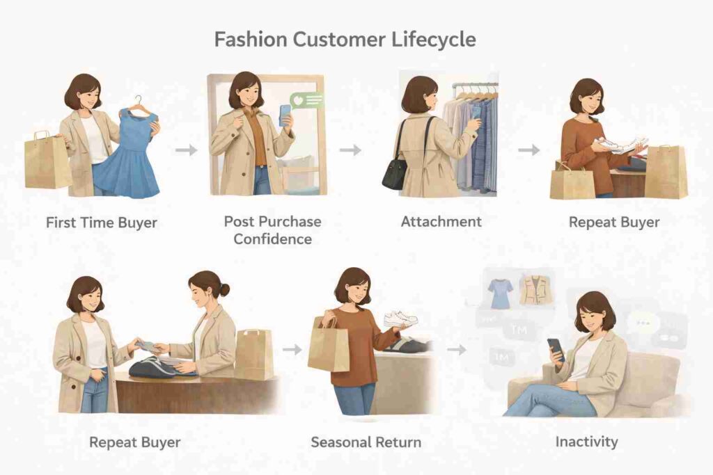 At its core, fashion purchasing is emotional and situational. Customers buy because something resonates in a moment. The follow-up communication must respect that moment.