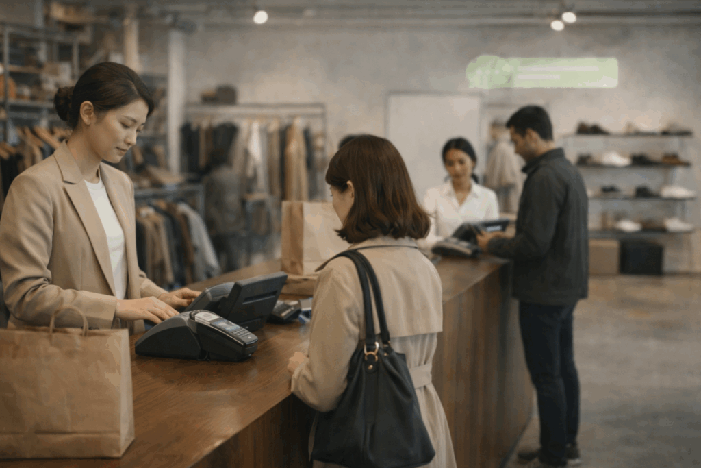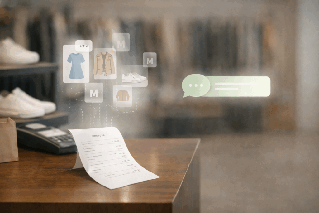 A customer buys a product—in-store or online. An invoice is generated. The brand does not ask the store staff to tag anything, select anything, or remember anything. The sale completes as usual.